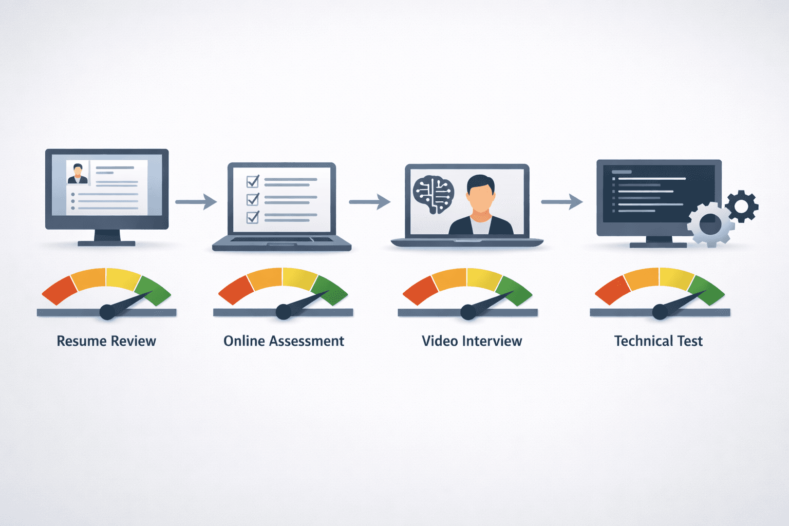 A typical pipeline might look like this: resume and profile review, followed by an online assessment, then a video or live interview, and finally a technical or role-specific round. At each point, AI systems quietly observe patterns, compare signals, and update their predictions.